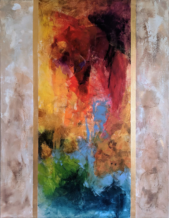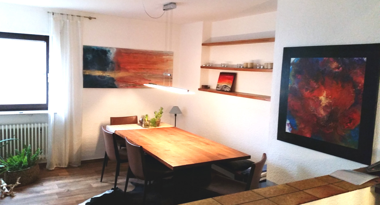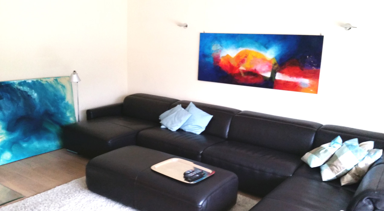 Wohnbeispiel Bild "Orange and Blue" 70x170 cm und "Golden Center" (nicht verfügbar)